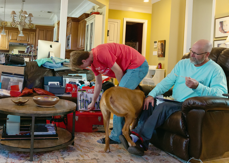 Since we got Scott new recliners, we had to move the Christmas morning spot to the couch. It was not without debate and mild disappointment. I think it’s fine. It was a little chilly, and Deebo, like the Ridgeback before, loves him a fire..jpg)