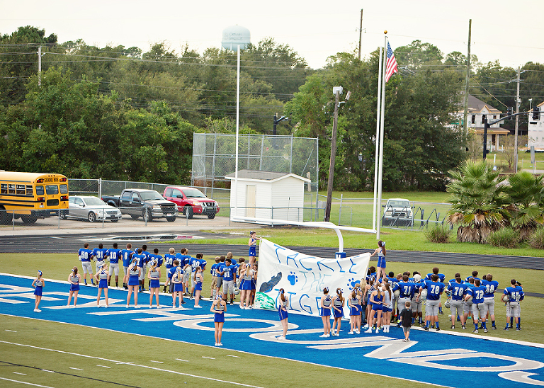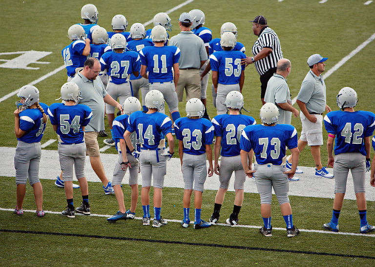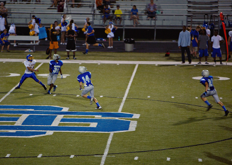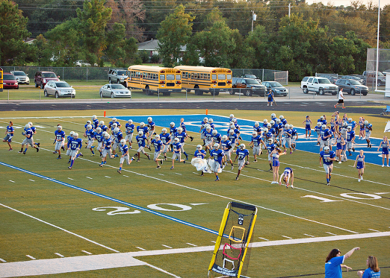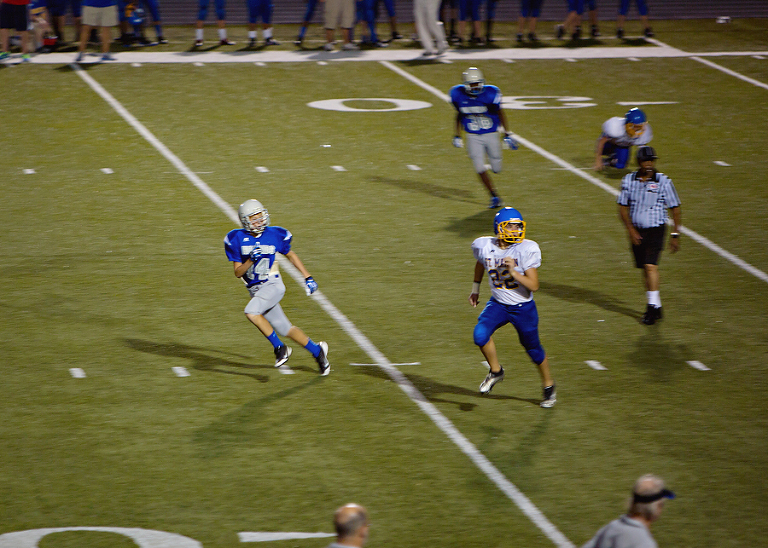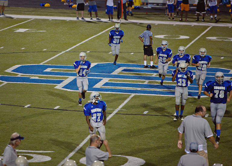 Yeah, I’m behind, I know. These are from Christian’s first few football games this season. I had to take note of the missing S in the opponent’s sign. Not only am I way behind, I’m an English major that feels the need to call out spelling mistakes. It’s a horrible combo, I know. It’s ironic considering my grammar on my blog is questionable. Run-on sentences, fragments, missing or misplaced apostrophes, made-up words… it’s all there. Feel free to call me out. I can take it!I love it when they do this. Seeing the whole football team racing toward the ball gets everybody ready for kickoff!I don’t know if you can see it, but our S was alive and well.William and Christian were waiting patiently.Halftime is for Dance Team!Here comes the Hounds!There goes Christian.There he goes, again!Christian was listening to Coach Gaunce. Why doesn’t he listen that intently to me? Maybe Coach can give me some tips!