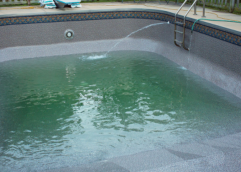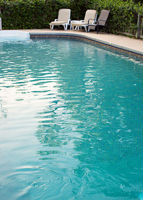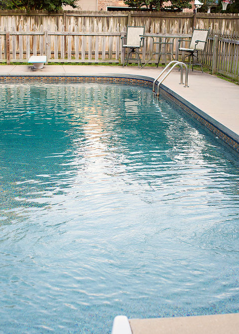 Well, our pool liner finally gave it up. I searched online for pictures because I knew I wanted to pick something completely different, but it’s hard without ever seeing it in person. I decided on the Aztec Sandstone and crossed my fingers that it wouldn’t suck. Scott wasn’t sure, but he’s pretty accommodating when it comes to making me happy, but I was sweating it! Ordering it may not have been a problem, but if it was hideous, everyone would bitch for the next 10 years or until it wore out, too. The Cochran’s drained our nasty ole pool last week and put in the new liner. It looked so weird, but I was hopeful. When they started filling the pool, it looked… interesting.The more water that went in, the greener it got. Green is pretty, but it doesn’t really go with the blueish border. Oh Lord, I have messed up. We have an algae colored pool!Then we put in the salt, and it started making chlorine, or whatever the hell it does…And all was right in my liner choosing world. Everyone loves it, and Jackson is convinced that it is an entirely new pool. This may just be my new favorite color!
