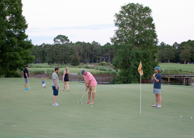 We have been cooking lots of yummy meals this summer, and after we eat, we like to spend a little time in the back yard. Wyatt is a fan of the golf course for sure!