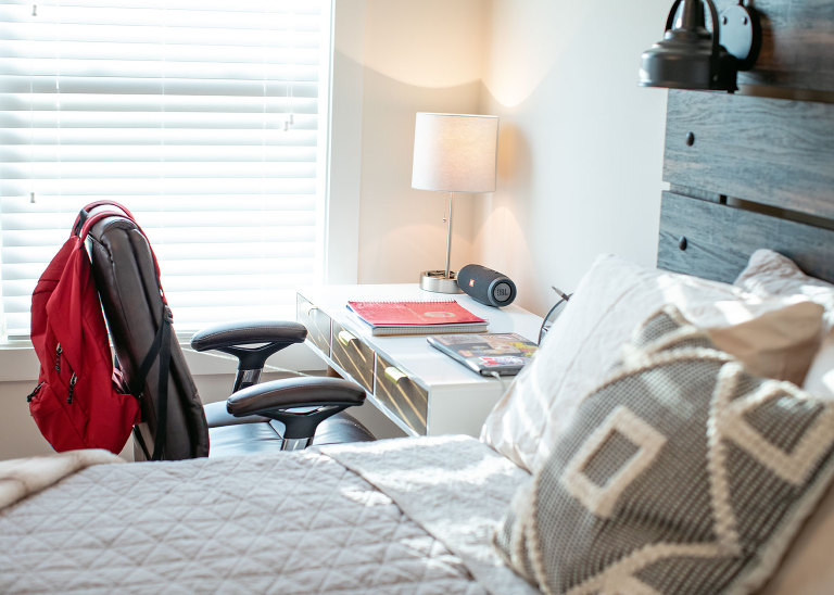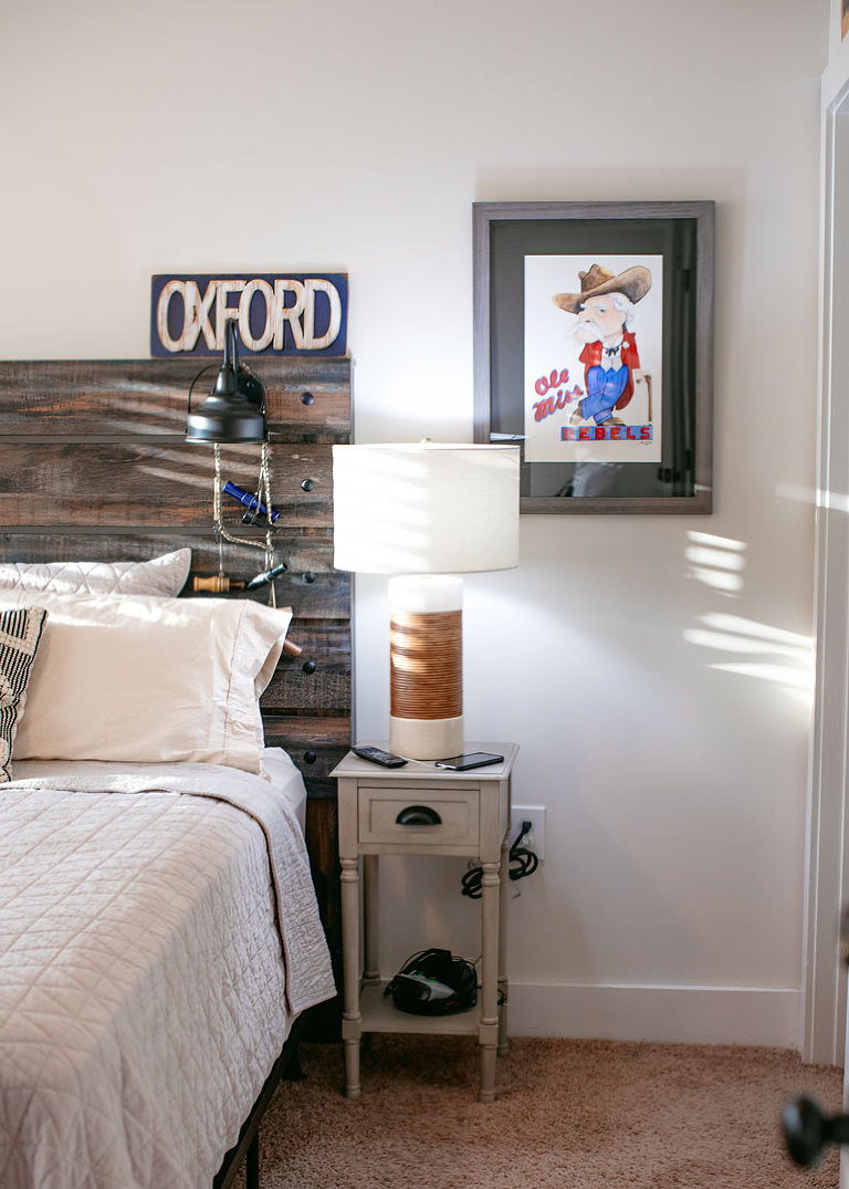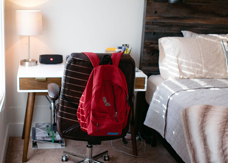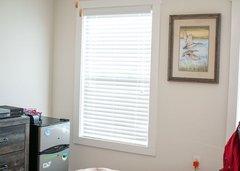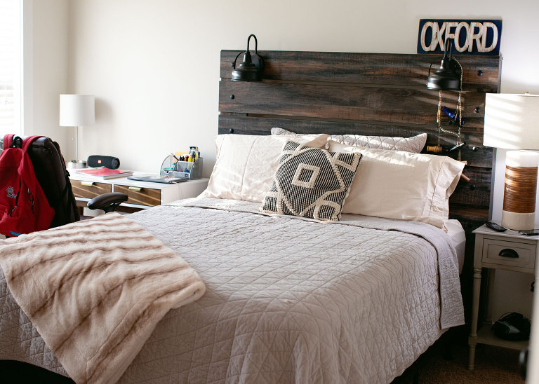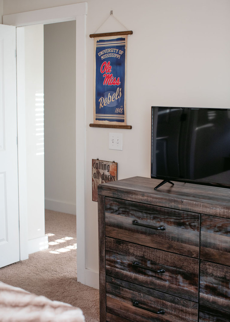 Christian is all moved in. He still has some little things to get, but the majority of it is done. I didn’t take any pictures of their living room because when I was there it was just a sectional and a tv on the floor. The other boys’ families were coming the day I left, but Beau already had the door mat out and ready. Christian finds this hilarious. This is right outside Christian’s room. There is access to the front porch, and it’s a perfect spot to store clubs. Maybe, maybe not.