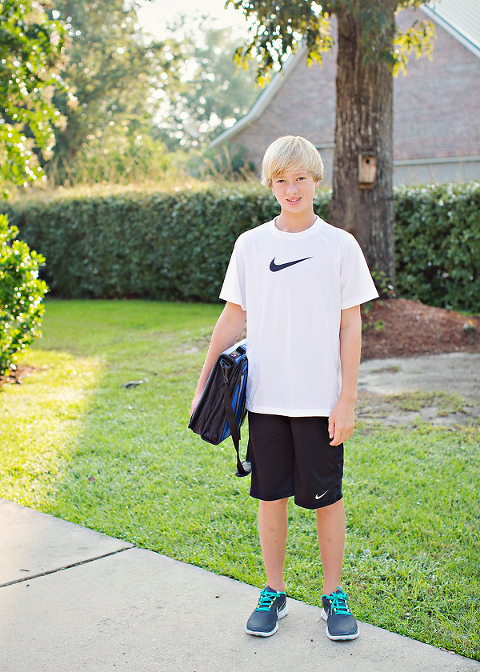 Well, we officially have a 3rd and 7th grader in the house.We ordered Jackson a new backpack over a month ago, and after they delivered two wrong ones, we finally gave up and just went with last years. He was okay with it!He didn’t get the teacher he wanted, but his two best friends are in his class, so I think he’ll be fine. Besides, how can a teacher not love that face???Christian didn’t get the team he wanted, but he did get a few teachers he wanted, and he doesn’t use a backpack, so all was well there.After two months of no bedtimes and sleeping half the day away, 7:15 came awfully early. Look at those sleepy eyes. He has football practice for a few hours every afternoon, not to mention as one of his classes, so I don’t think those sleepy eyes are going anywhere.Sleepy eyes or not, that boy looks good! It was another successful first day.