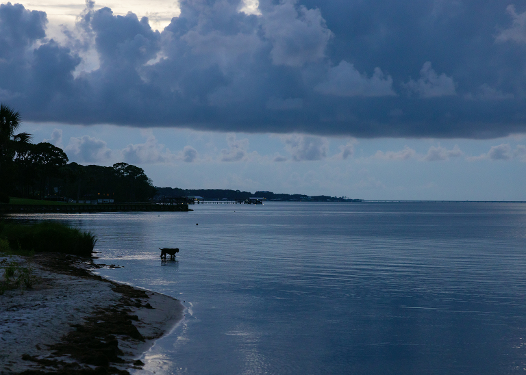 We made a few visits to the sunset spot while we were in town. Charles and Cash came by to see us. I think Cash just wanted to see the bay but Deebo was a bonus.The sunset wasn’t all fiery and red, but blue is beautiful, too.