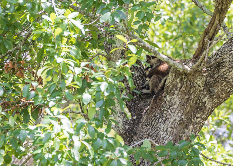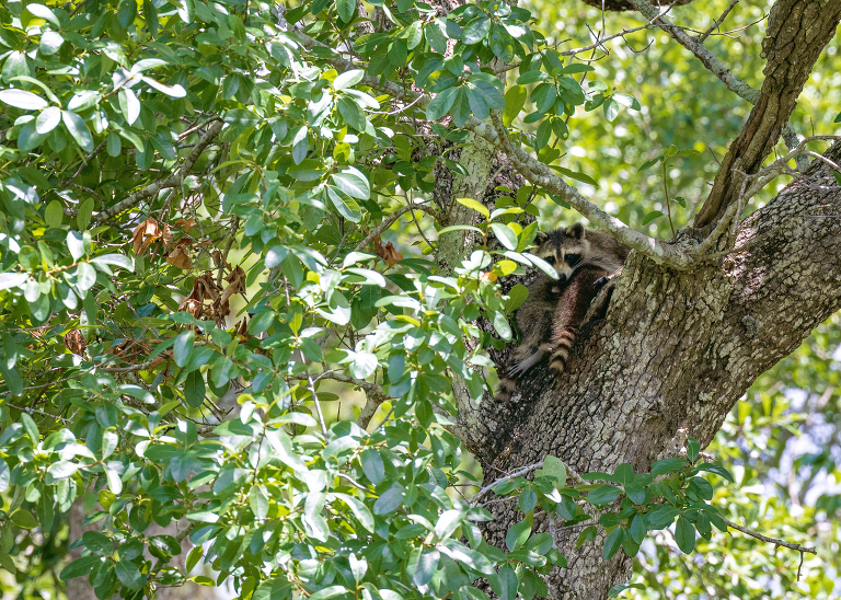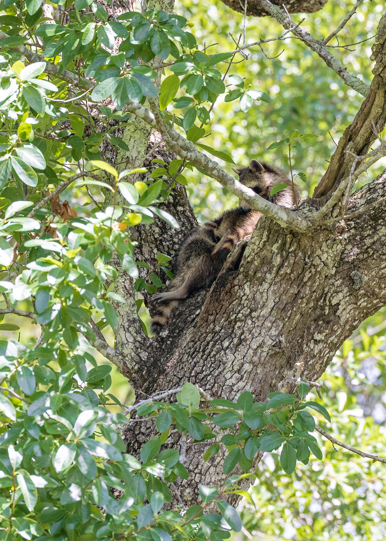 Back HomeWednesday, September 14, 2022We have a raccoon family living in one of our trees in the backyard.I’m pretty sure Momma is breastfeeding. Posted in Wildlife