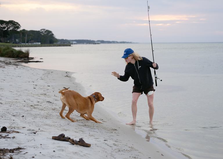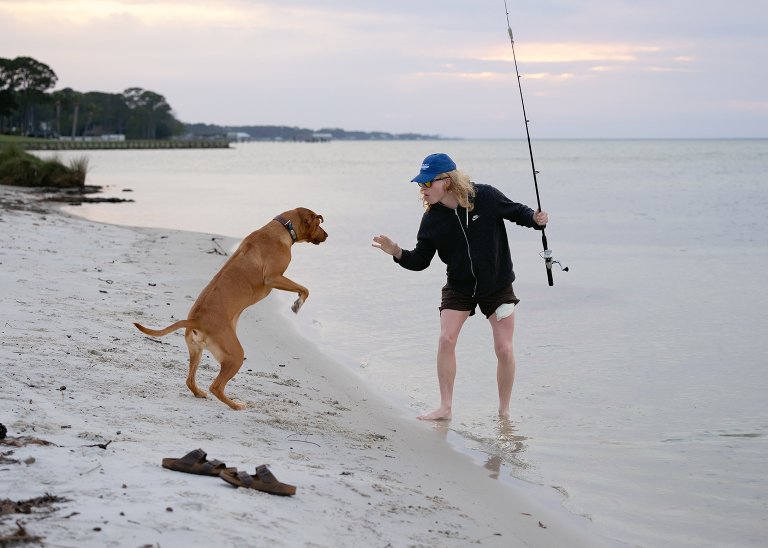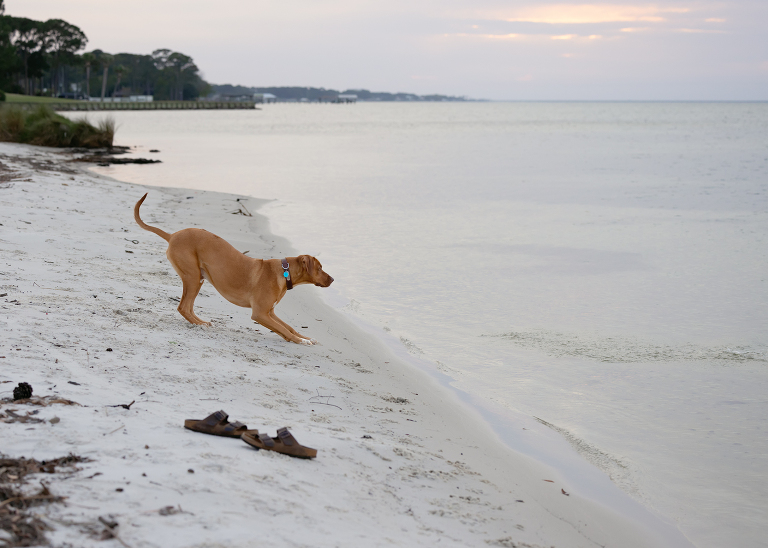 Deebo sat on the shore, not very patiently I might add, waiting for him to be done.Oh, he was so happy to have him back!Bringing home the bacon literally and figuratively is exhausting.
