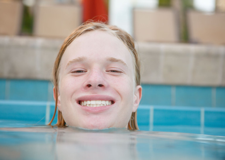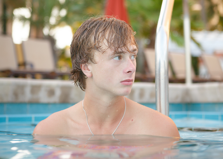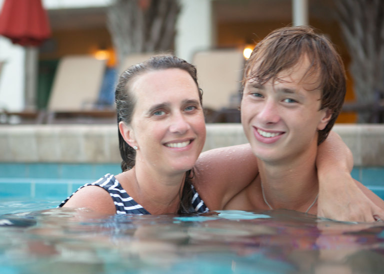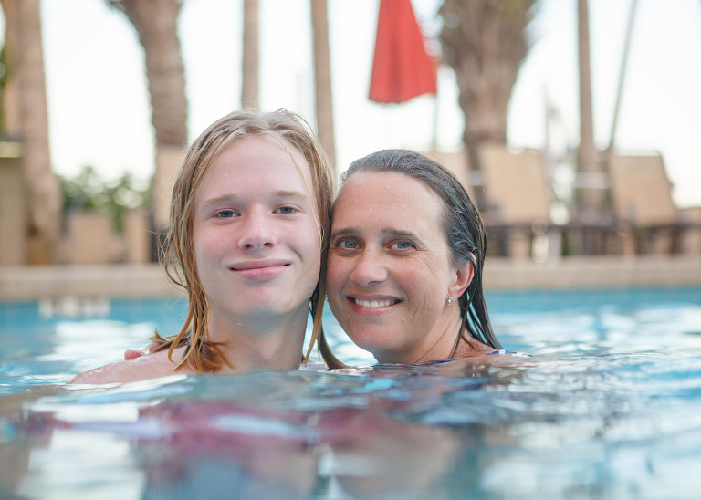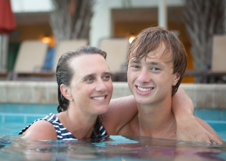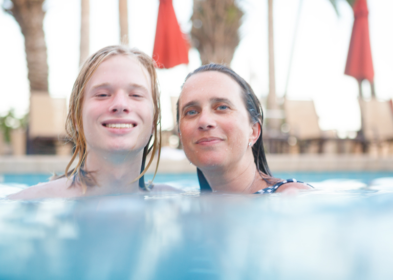 Apparently, family pool pictures are hilarious!Christian taking advice about college with a glazed look in his eye…Jackson showing off his straight teeth…I even got in some pictures!