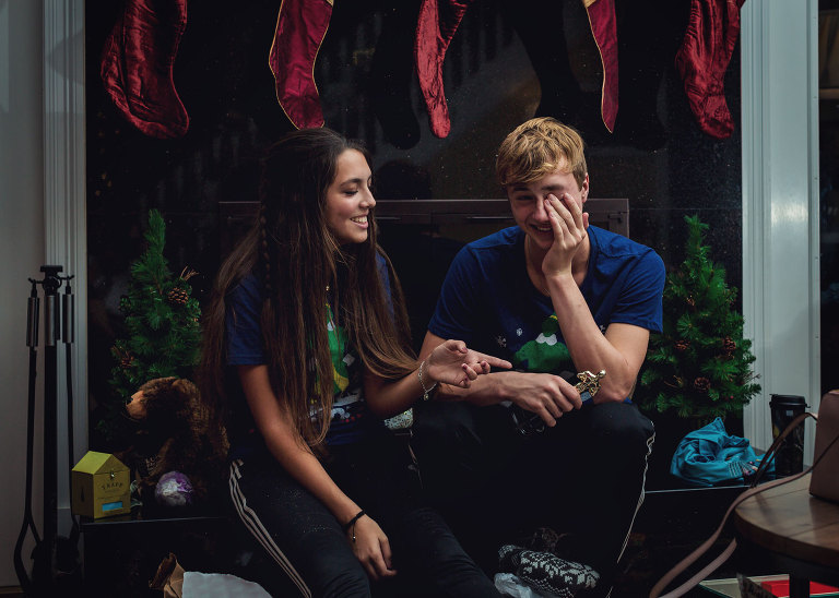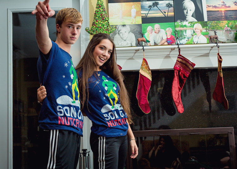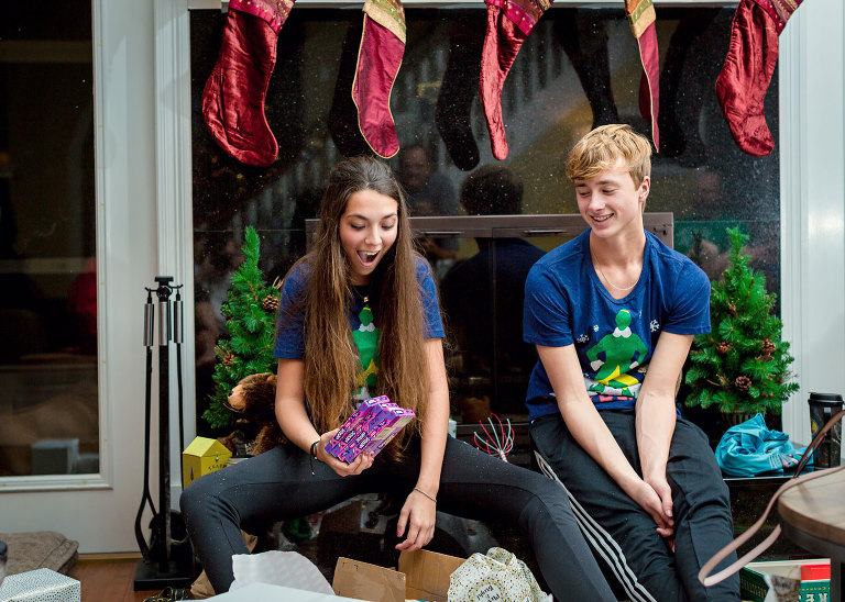 Before we played Guesstures Christmas night, Christian and Miya exchanged gifts. They gave each other more gifts than Santa gave them. Poor things had an audience for the whole thing. My favorite was the Son of a Nutcracker shirt.