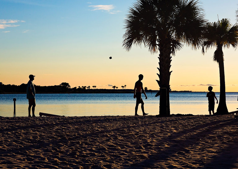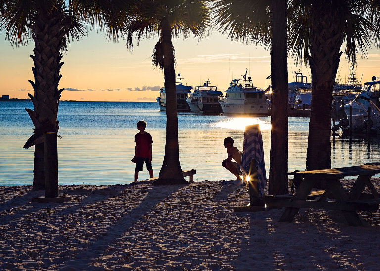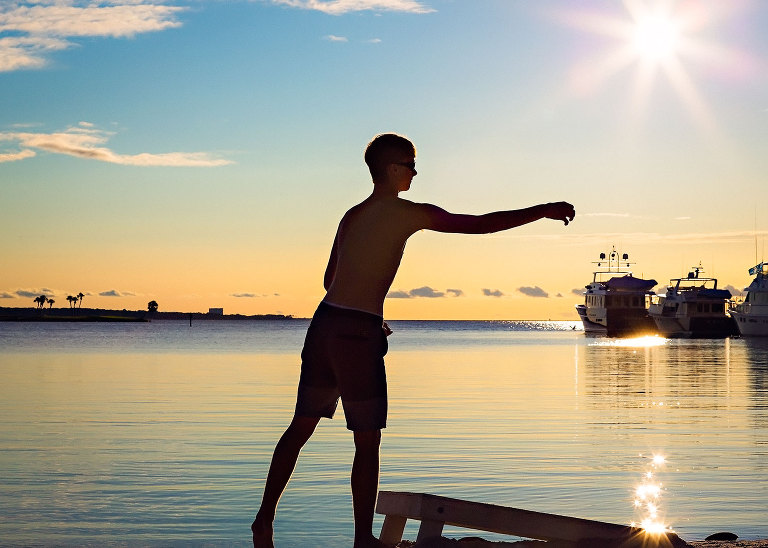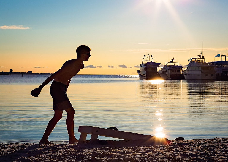 We discovered a corn hole board over at the marina. Sunset and corn hole makes Christian look like a vampire..jpg)