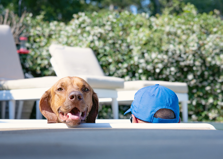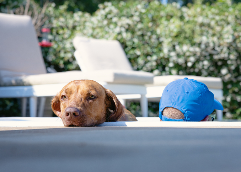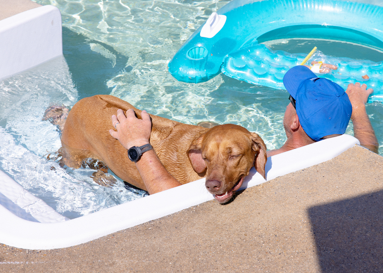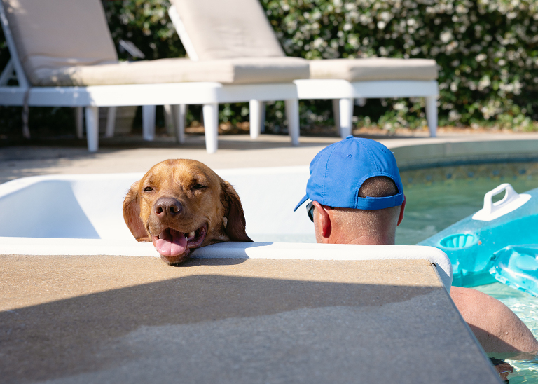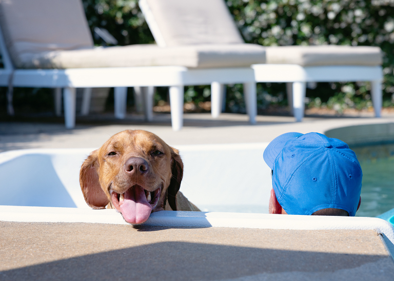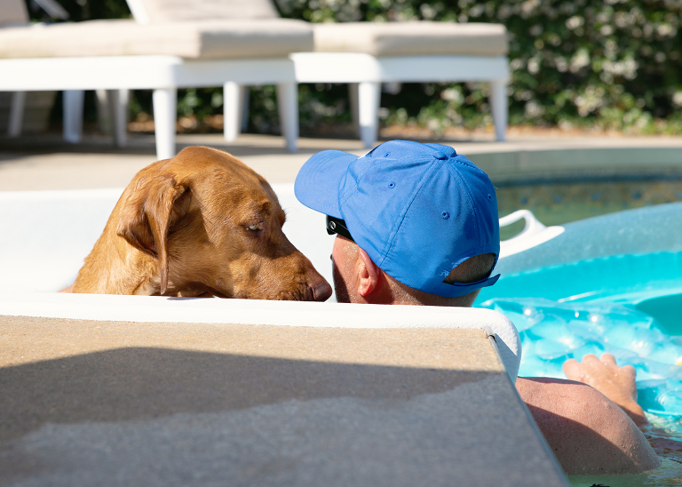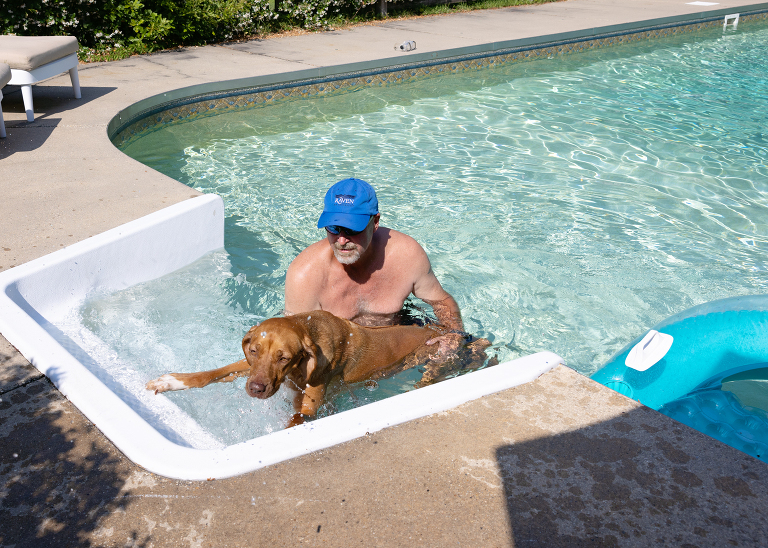 DesensitizingWednesday, August 17, 2022Do you think if we regularly bring him in the pool he will get used to it?My guess is no. Posted in Deebo, Scott