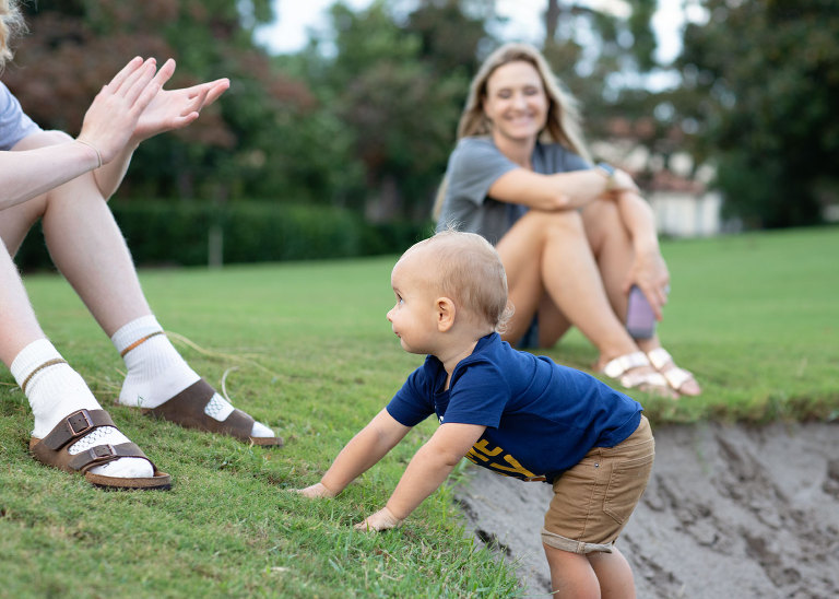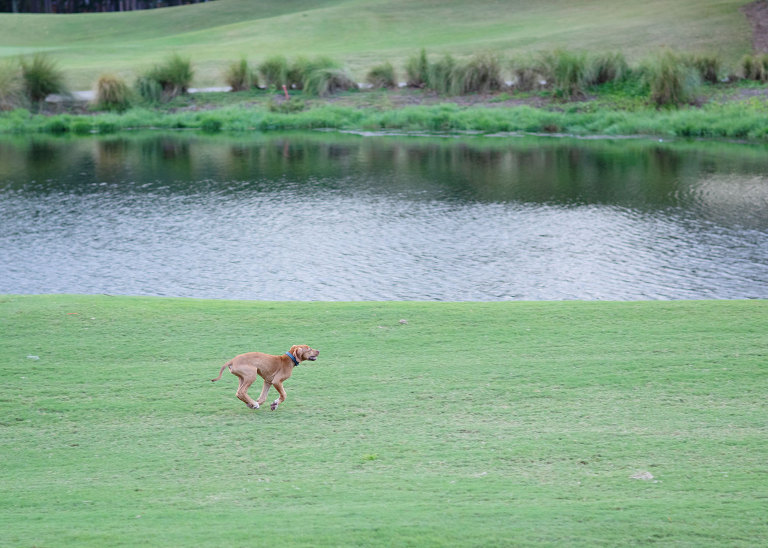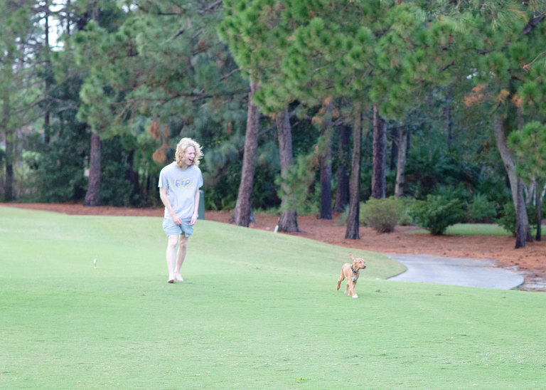 Our last day was spent cooking, eating, watching football, and hanging out on the golf course. That’s pretty much every day down here.Normally, we’d play in the sand at the beach, but this day, we opted for sand traps.Deebo loves the wide open space.Brad is up there on the porch watching football, and although there were no pictures, we did get to say goodbye!