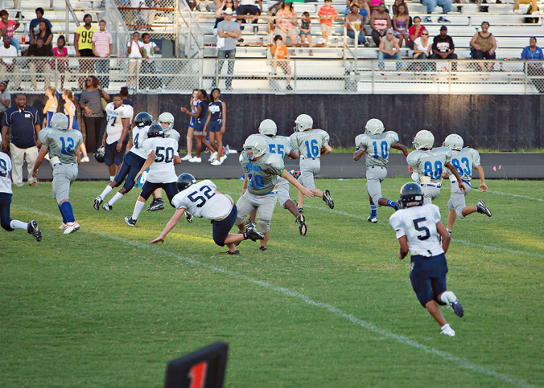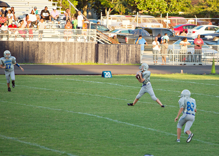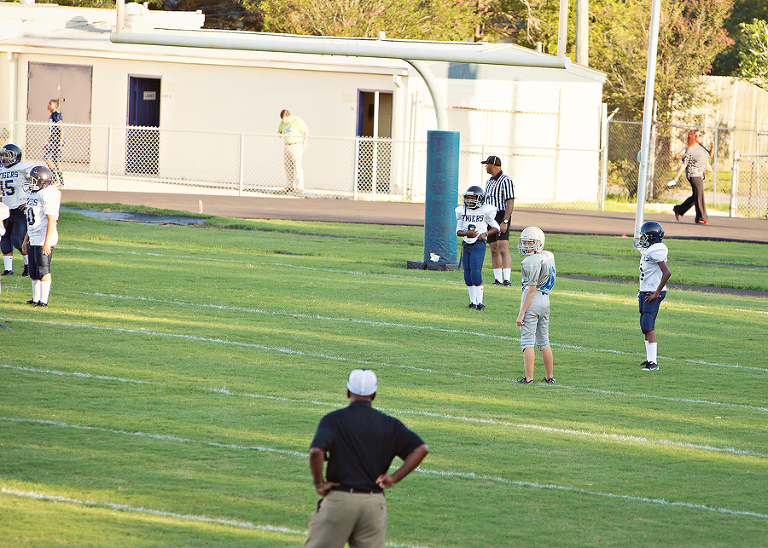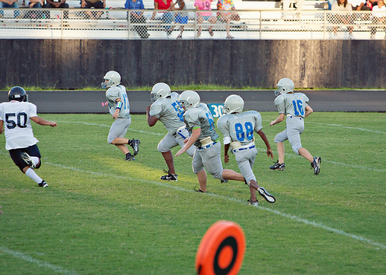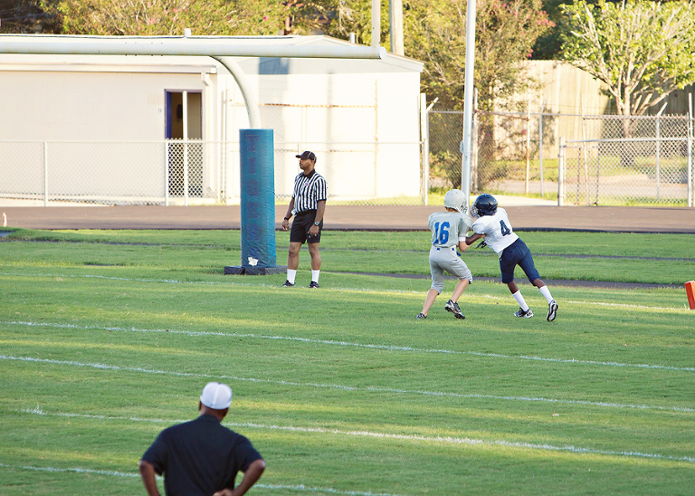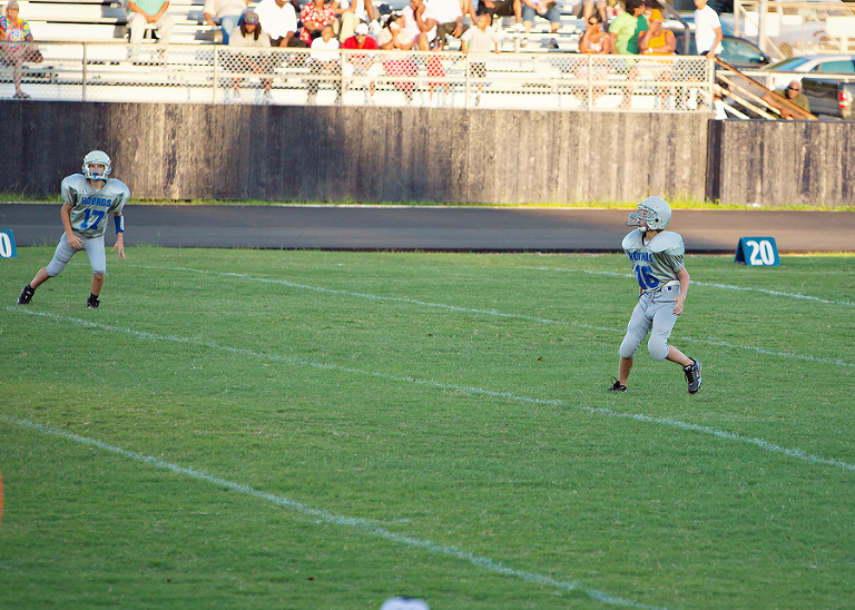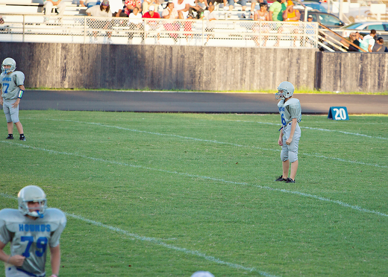 Isaac put a damper on Christian’s first game, as in cancelled, so his second game became his first this week in Moss Point.Sometime in the first half he went in as wide receiver. He must have been looking back at the coach, but I swear, it looked like he was looking right at me. I figured it was a reassuring glance to let me know he’d do his best not to get smooshed out there. Mommas worry about their kids getting smooshed on football fields.Okay, everything went well out there that time.No worries, it went well every time.