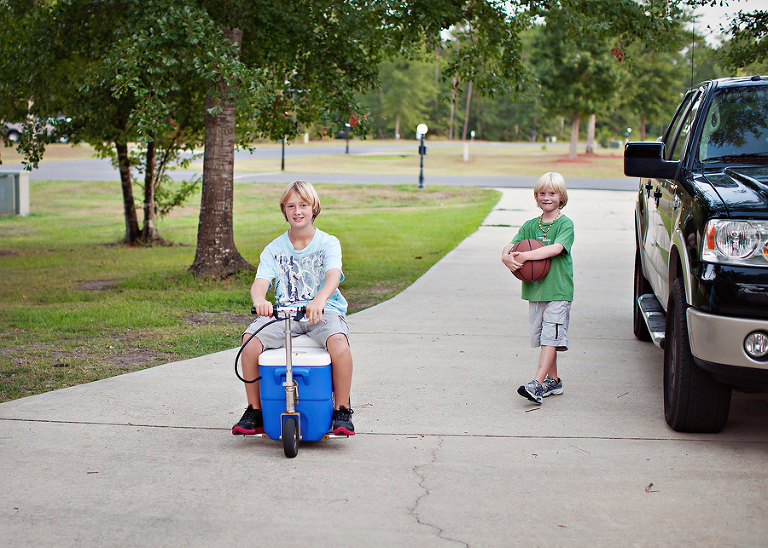One of our neighbors has this really cool ice chest. We saw him riding with his baby boy one day, and he stopped and let Christian take it for a spin. This little thing will go 20 mph, not that anyone ever does, but it will.