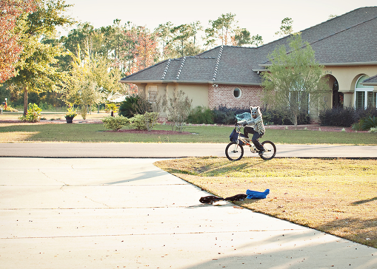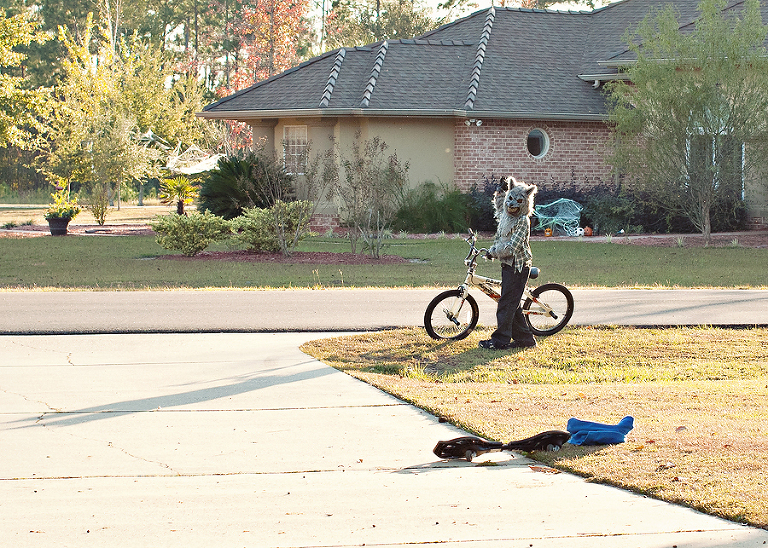While we were all waiting on trick or treat time, a werewolf rode up. ADORABLE!