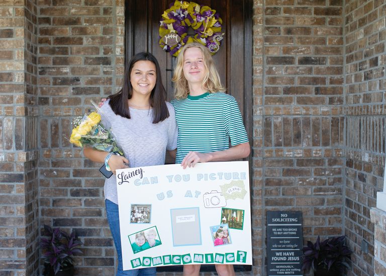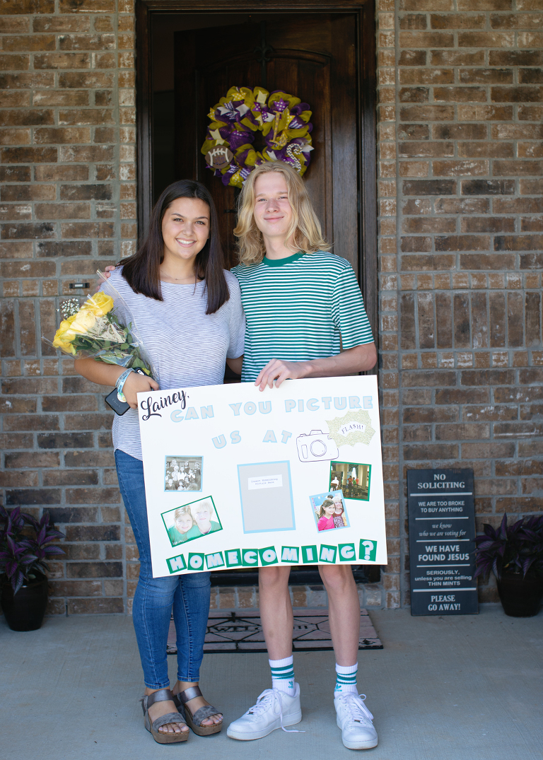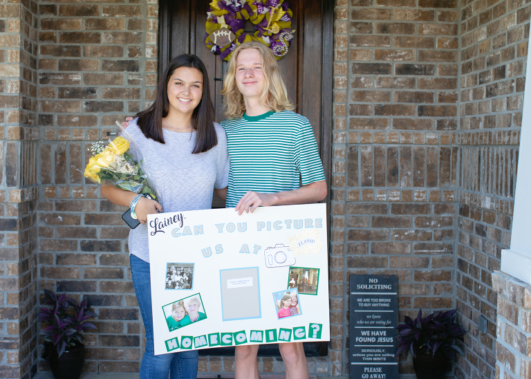 And, no, I don’t mean is the date already upon us, I mean, is Jackson seriously old enough to go to homecoming? Well, since he obviously is, I can’t tell you how excited I am that he decided to go with his oldest friend, Lainey. They had already made plans to go together, but that didn’t stop him from giving her the new customary homecoming proposal. Her mom was his 2nd grade teacher, and one of his absolute favorites. When she answered the door, he asked her first!