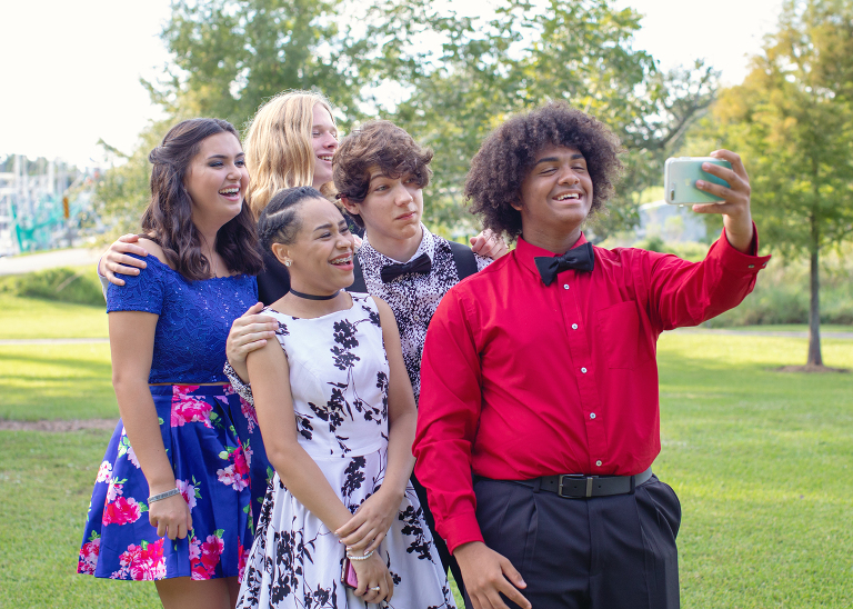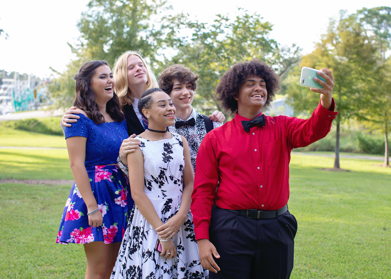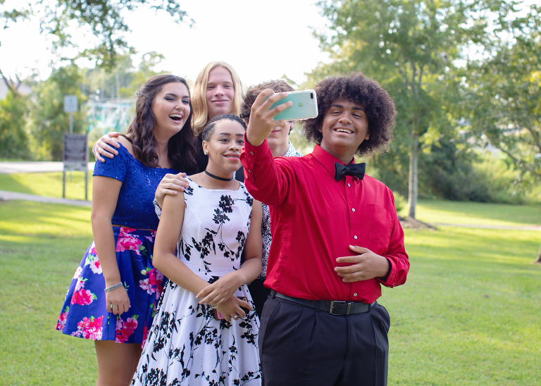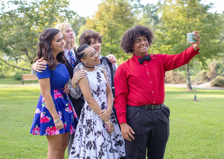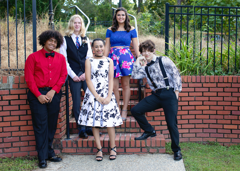 Here we are, about a ½ mile away from our intended location taking a few group pictures. Their group started much bigger, but after a few date cancellations, some people dropping out of the dinner and photos part, and some opting out of homecoming altogether, they ended up with 5. I personally like a smaller group, and I think Jackson did, too..jpg)