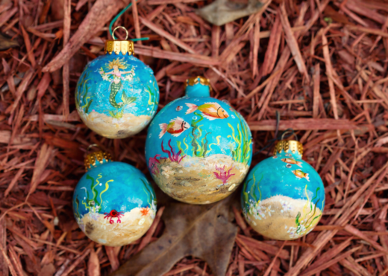 I don’t know if I’ve ever told you this, but I am a craft whore. It sounds overly dramatic, but it’s true. I become obsessed with something, anything. Seriously, it doesn’t have to be cool. I must master it, or at least give it my best try, then I move on to something shiny and new. Before we had kids, I took pottery classes. I had to do it. It was so fun! I was the largest producer in my beginner class and was asked once if I wanted to put some stuff in their shop to sell because they had a couple people try to buy one of my pieces. I didn’t, but how cool???? Six months in, I got pregnant and couldn’t be around the glaze and the kilns. I had to take a break. When the baby came, who had time for pottery classes in Long Beach anyway? Not this girl. I moved on to something I could do during nap time at home. The new phase was scrapbooking, something I made fun of for years until I had a baby and felt like it was my job, no, duty, no wait, calling, to document everything they did with pictures, cute cut-outs and sequins. This went on for awhile until I decided I wanted to learn how to sew my boys cute little jumpers and embroider the front with their names or appliqués. We bought a machine, and I was off and running. I took classes and made the boys a zillion pair of plaid pants and shorts with cute little t-shirts. I made matching tees for every occasion, and even made Jackson the best chicken costume ever. I made little dresses and gave them to my friends with girls. When Jackson grew out of the wearing cute plaid shorts and jumpers stage, and I accepted that I never was all that good at it, my sewing days were mostly over. Next came painting. No, I cannot paint, not real painting, but I painted walls, frames, ornaments, whatever I could find! Somewhere along the way I decided that I needed a DLSR. Scott had given me a film camera our first Christmas together because I mentioned I had taken a photography class, go figure, and liked it. Turned out, I didn’t remember any of the class. It didn’t stop me from taking a million pictures with that film camera, but I was ready for digital. We bought my first DSLR, and I took a zillion pictures with it. I still didn’t know what I was doing, but I enjoyed it. When I decided my pictures weren’t good enough, I started reading everything I could about photography. I got better, but then I realized that I needed to learn Photoshop if I wanted to take it even further. At night, instead of reading or watching TV, I learned about ISO and f-stops. My craft paint stayed in boxes drying up while I watched tutorials on editing. Miracle of all miracles, I’m still obsessing over photography eight years later, otherwise, I wouldn’t have this blog. After Christmas, Scott and I were cleaning out the attic and I came across some of my painted ornaments that I haven’t seen in years, and I was shocked. No, they aren’t going to win any awards, but for this craft whore, they are pretty cool. How did I know how to do that? I proudly showed them to everyone in my family and even took pictures of them before boxing them up for the Beach House. I really don’t have a point here, other than to say I was always a little disappointed in myself for never sticking with anything. Even when I was a kid, I quit piano twice, gymnastics, ballet, tap, softball for a couple years, the gifted program, writing… I could probably go on. But, ya know what? I am not a gifted pianist, but I can recognize notes and play a few Christmas songs. I will not be breaking out toe shoes, but I remember the way Ms. Joanne made us stand in class like it was yesterday. I can’t do a back handspring to save my life, but I did cartwheels and flips in the front yard when my boys were little and easily impressed. I don’t play on a softball team, but I know enough to be useful to my boys when they need a catcher or their coach needs someone to explain a force out. I don’t write with the idea of a book in my head these days, but I write stories on my blog all the time. I don’t throw pots anymore, but the evidence that I did is all over my house. I don’t make many scrapbook pages, but I still use the supplies occasionally to make a card or help the kids with some sort of crafty project. I can’t make myself a dress, but I still know how to take the hem out of Scott or the boys’ hunting pants and sew a new, possibly crooked one if necessary. I am not a painter, but that never stopped me before. So, rather than focusing on the fact that I quit, let’s consider the idea that I tried, and I learned. Sure, I never mastered a thing, but I picked up some cool stuff along the way. Not all of it will be useful, but you never know. I can always use the one hobby I stuck with and still practice daily, photography, to document anything else I want to try, and most importantly, anything my kids try! Now, just in case I never find those ornaments again, this is proof, I am an artist, even if it is in my own mind.
