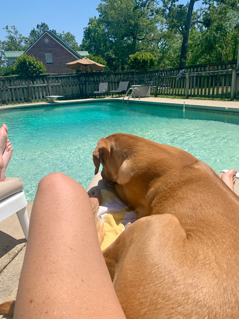 Deebo decided he wanted to snuggle with me out in the sun. It wasn’t hot or anything.