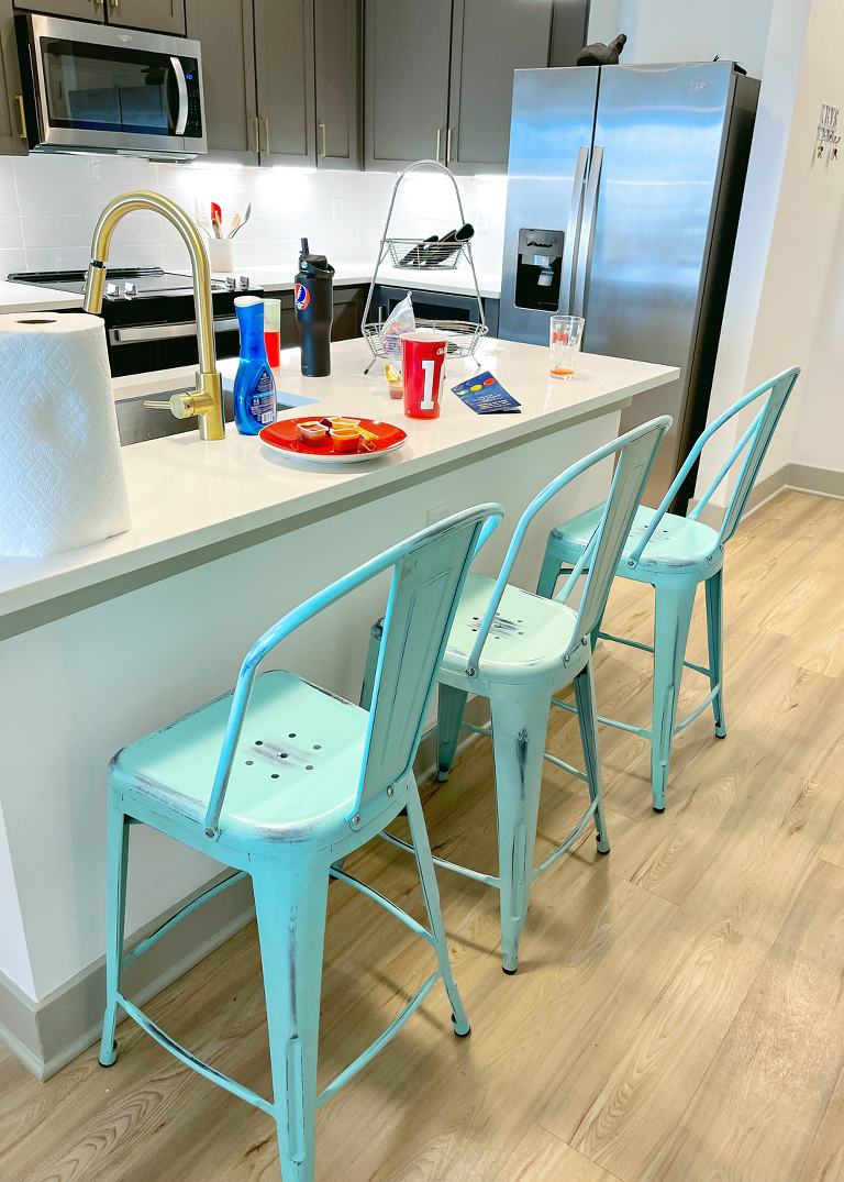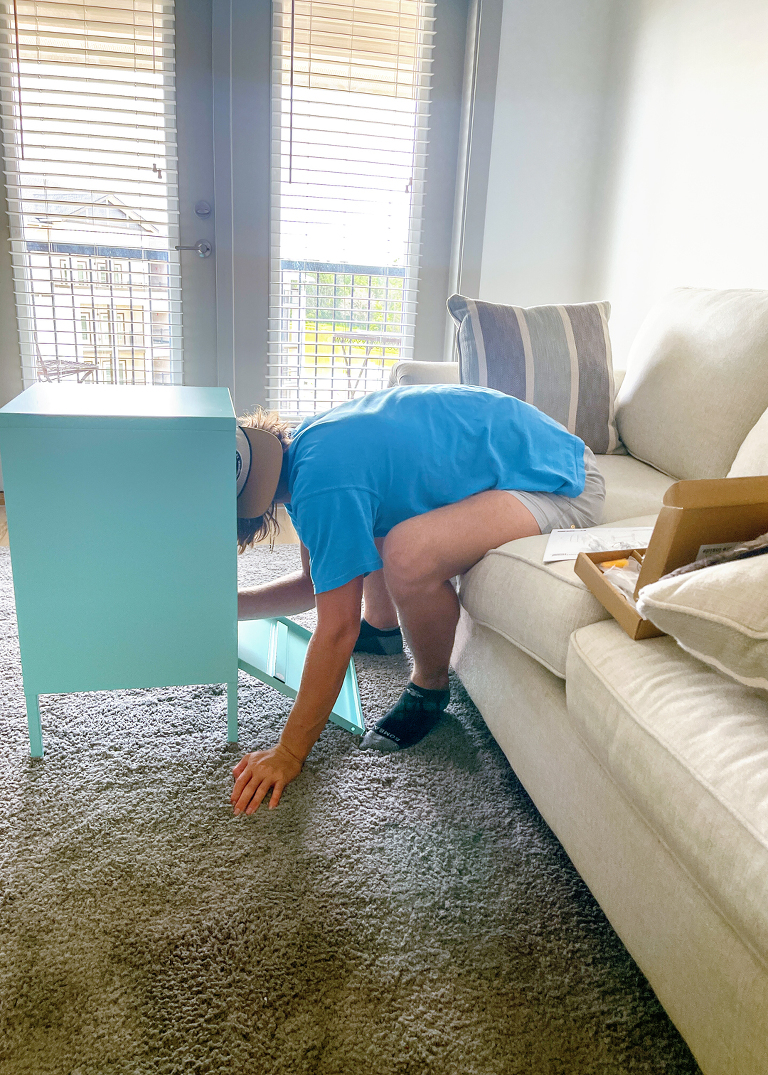 Here are a few behind the scenes snaps from the move. It wasn’t an entirely smooth start. It was raining like crazy, and we had to wait it out in the clubhouse hoping it would ease up before unloading the Uhaul. Jackson put his Rust videos on the tv, and rested on their couch while he waited.