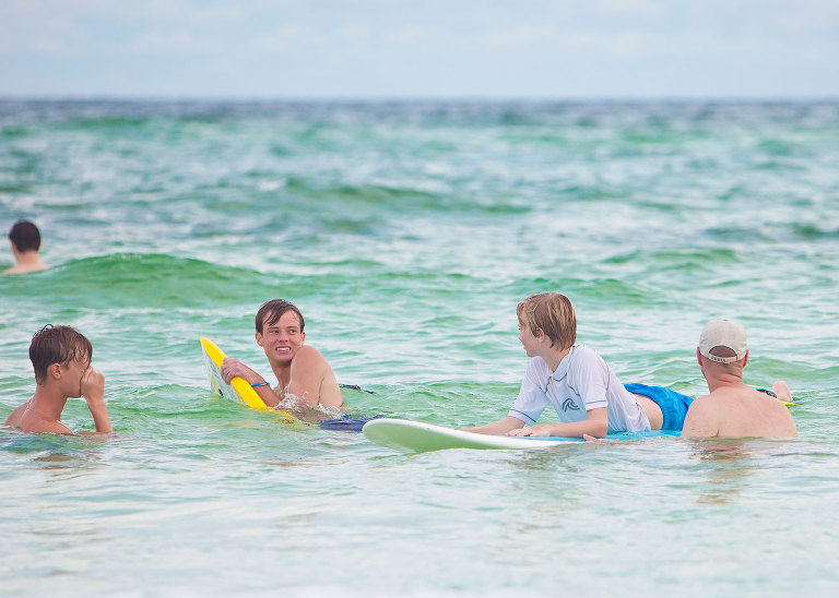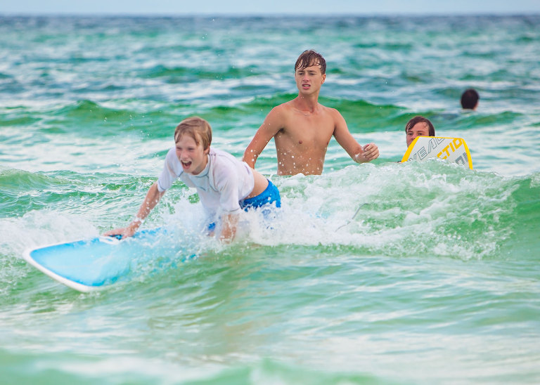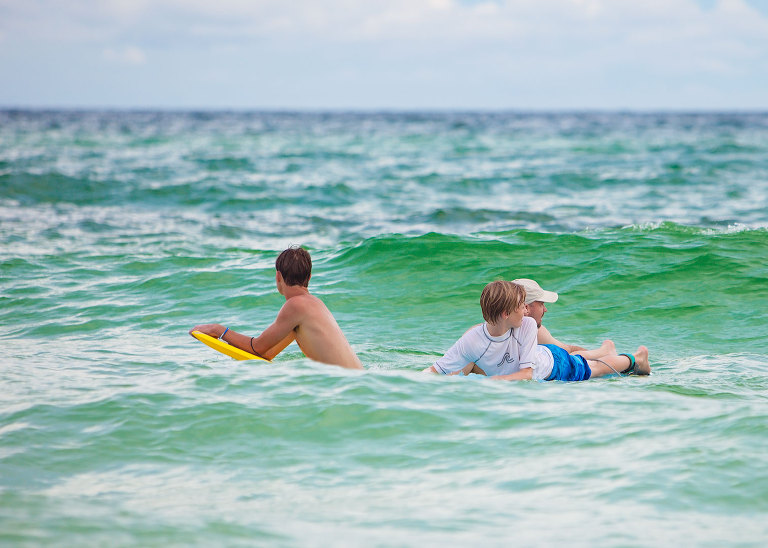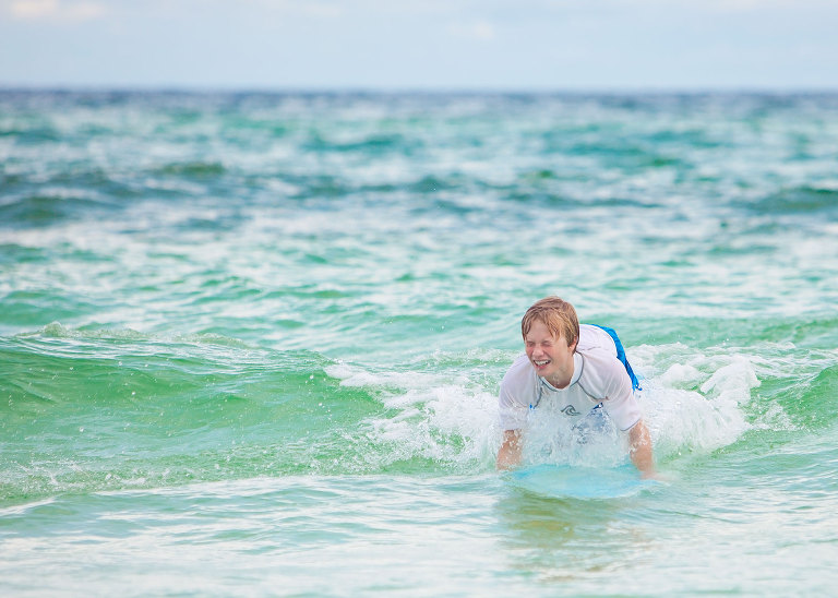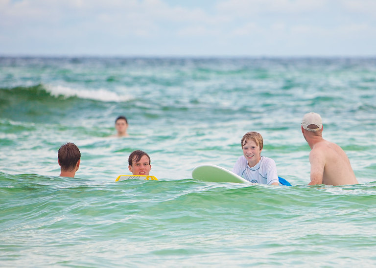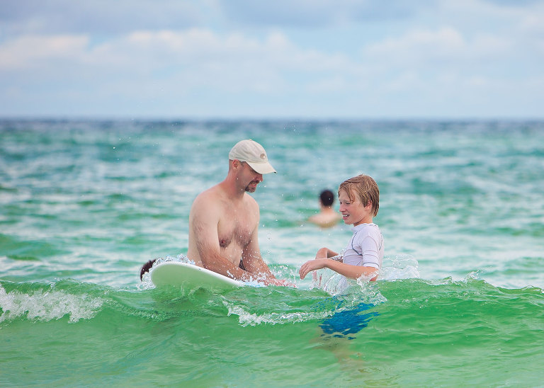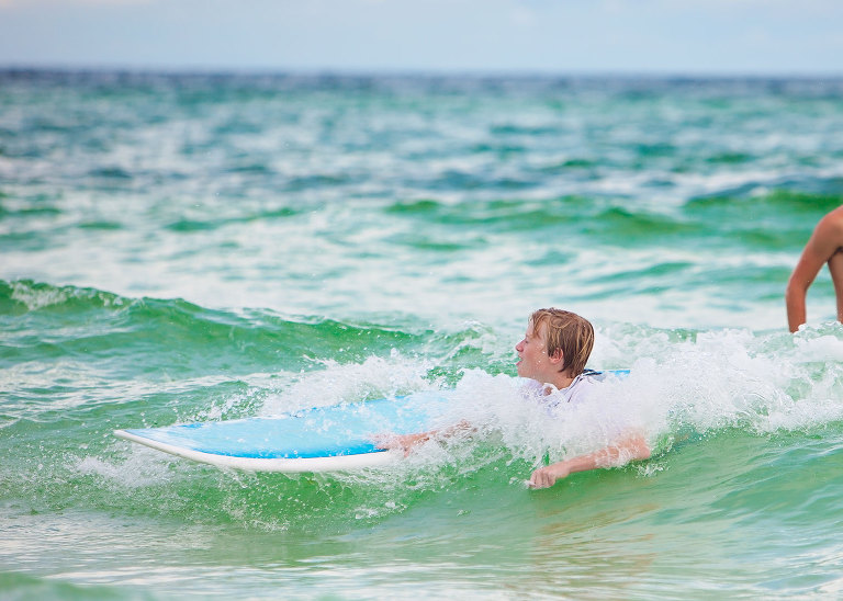 So, we’ve been asking Jackson if he wanted to try surfing for two years, Chad asks him once and he hops on board. He’s nervous, I can tell, but he pops up on his knees so easily. I’m jealous.