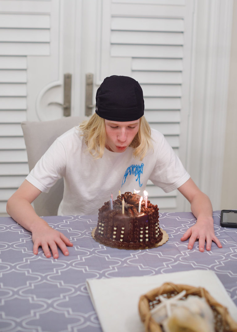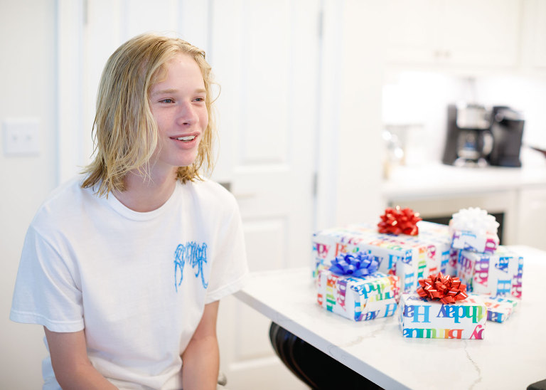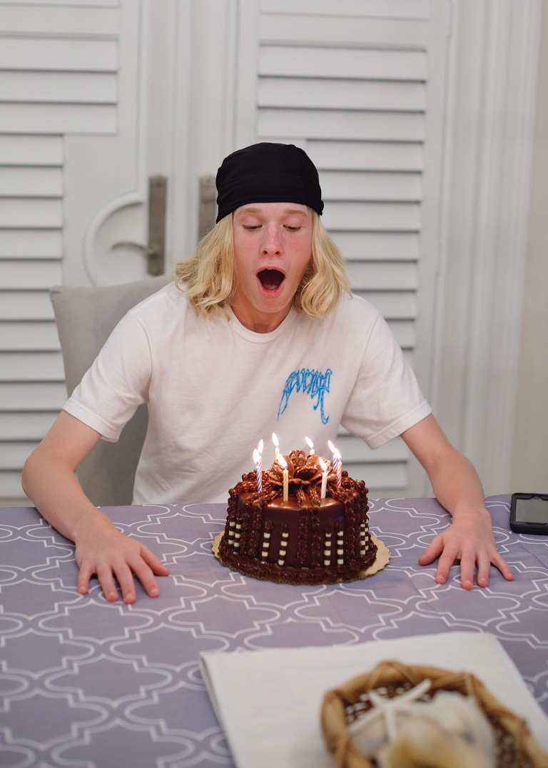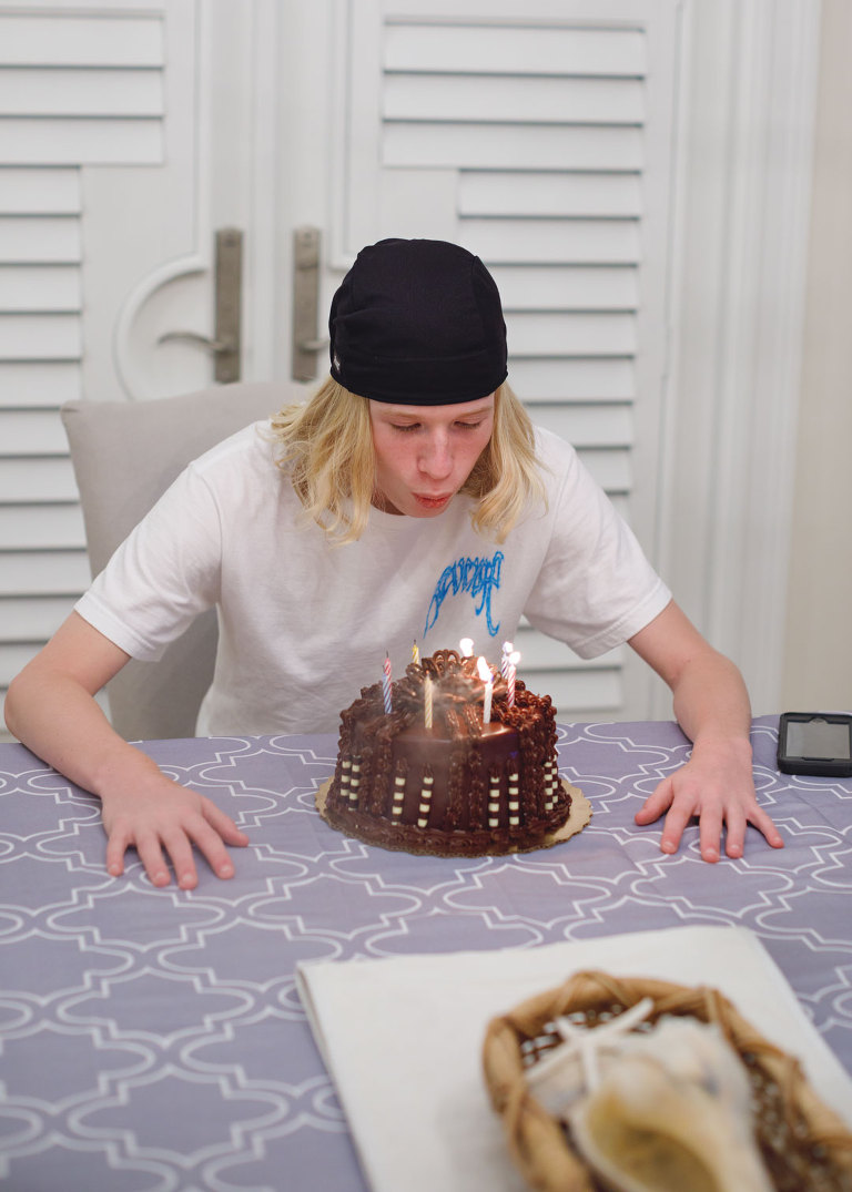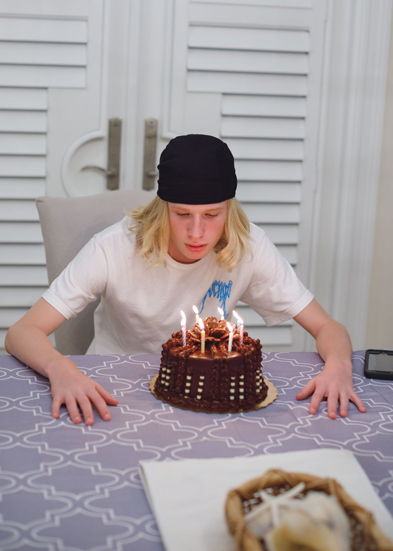 Jackson’s 14th birthday began with presents! His present requests were pretty funny. The things we did NOT get were the huge American flag and the megaphone. He’s such a funny kid!I didn’t take pictures of the best part of the day because I was too busy enjoying. Brad, Lindsay and Cathy made it back to town to help us celebrate. He chose Chang’s for dinner, and they even brought him dessert and card signed by the staff. Afterwards we went to the arcade and played laser tag. We played two 15 minute games, and it was pretty serious. By the end I was sweating! Afterwards, we headed home for cake.I don’t know about Jackson, but I thoroughly enjoyed his birthday!  I am, however, questioning buying him a do0-rag as one of his presents.