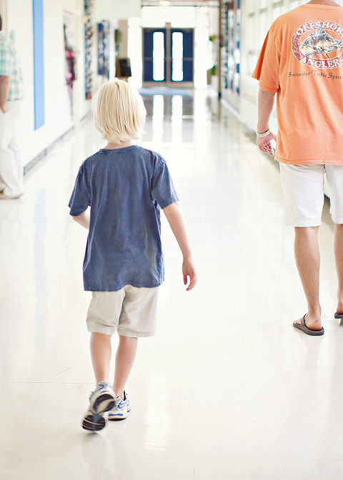 Jackson met his teacher today, well, he already knew her, but he officially met her as his new 2nd grade teacher! We’ve been trying to get this kid to get a haircut before school starts, but he’s not having it. Truthfully, I love his hair shaggy like this. I’m a little proud that he’s fighting the power! Here he is in his new desk with hair hanging all in his eyes. He was intentionally hiding behind that hair, probably because he was mortified I was taking pictures. I just hope he can see the board.