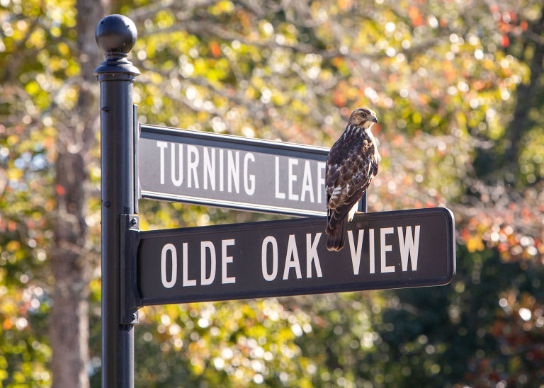 Sometime in mid-November, this guy or gal showed up. He/she stuck around for a few weeks living around our yard and a few of our neighbors. When we would leave, he’d fly at the cars. If you walked outside, he’d swoop over closer. He finally got smart and hasn’t been quite as visible, but I’m pretty sure I see him every now and again. We are totally best friends now.