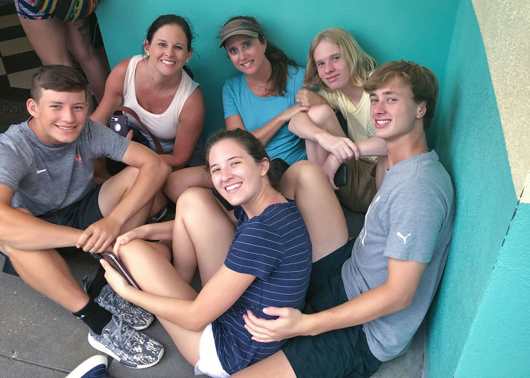 There was an afternoon lightning storm we hid from by the bathrooms, and some nice stranger got our only group pic.