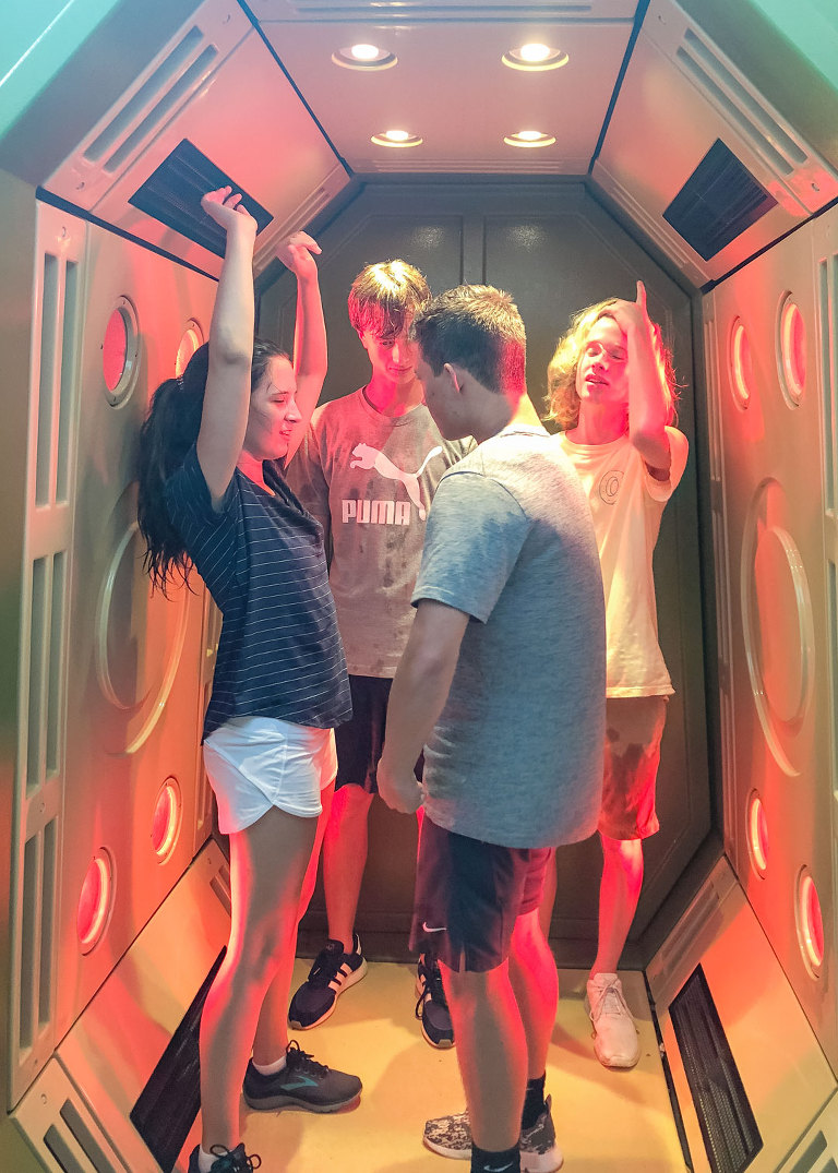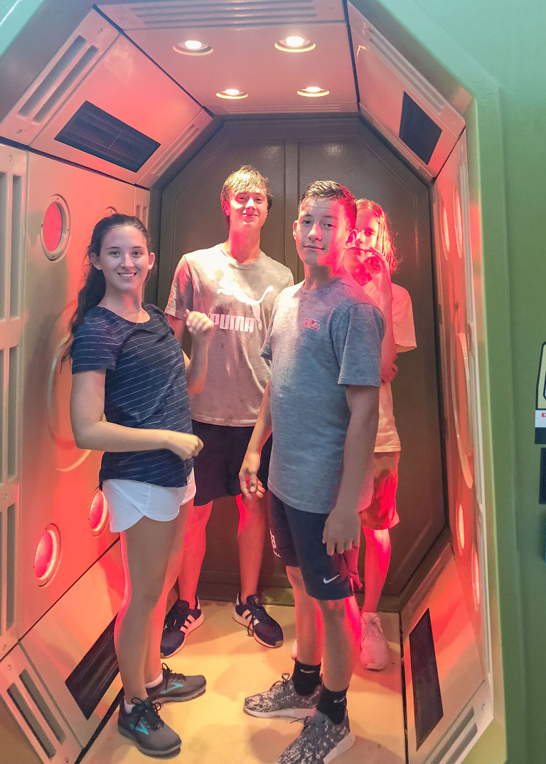 When we suggested the Jurassic ride, the kids kind of blew us off because they thought it was just a boat ride looking at fake dinosaurs, and it was. But at the end there was an 85 foot drop involving a huge splash that none of us were aware of. Christian turned around to us after it was over with water dripping off his entire face with a huge smile and said, “Now, I wasn’t expecting that!” Definitely the best moment of the trip. They got in the dryer afterwards.