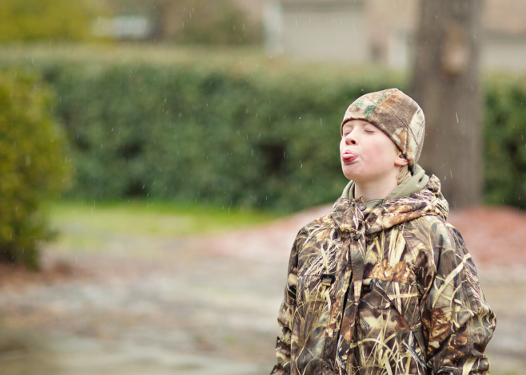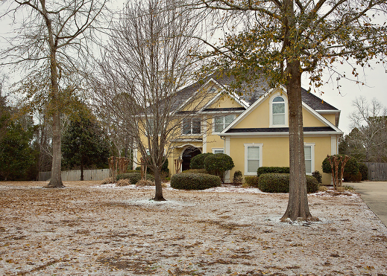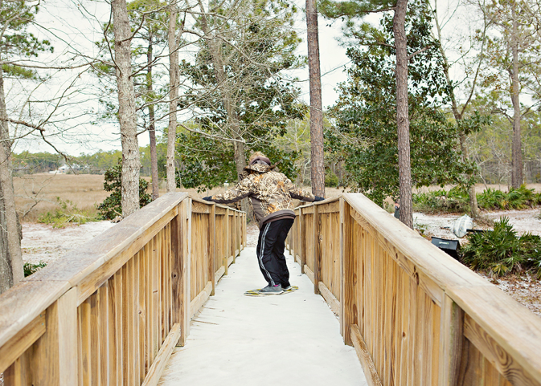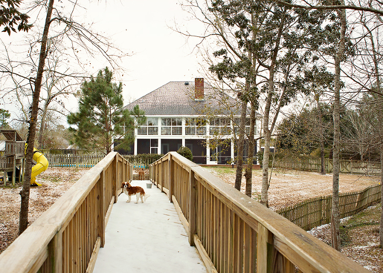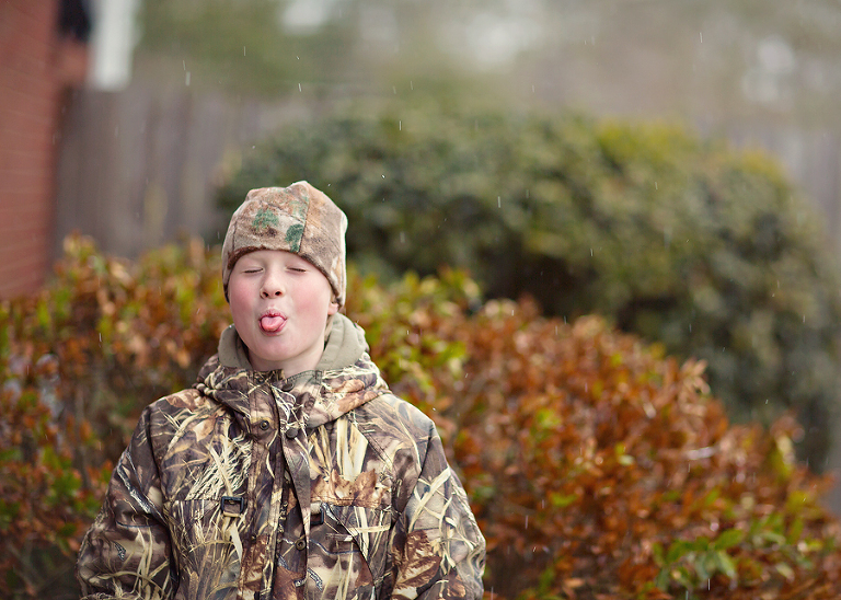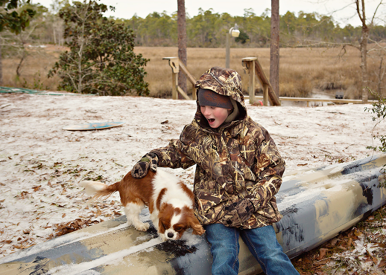 We never get snow. Ever. Occasionally, they will tell us there is a chance and everyone gets all excited, but it never happens. We get a little sleet, and a flurry once every 5 or 6 years, but it doesn’t stick. EVER!So, when they predicted a winter storm and cancelled school, we crossed our fingers, made a fire, and went about our business. Then it started sleeting and the sleet sorta stuck. This went on for hours, with a few snowflakes mixed in, and the boys were in heaven.Sure it was mostly sleet, but when that stuff piles up, it looks like snow. Now, don’t get it twisted, when I say piles up, I mean you can still see grass, but there is some white there, too. They told us it would really snow sometime after 11:oo that night. I stayed up as late as I could, but I never saw that real fluffy white stuff coming out of the sky. The next day, it was still freezing, and there was ‘snow’ everywhere. The boys spent the entire day, and part of the night outside having ice wars and skim boarding on bridges and hills. We had at least 15 boys of all ages back there at one point hurling sleetballs, and there may or may not have been some black eyes and blood involved. Lulu hated it at first, but she finally got into the groove and joined in the fun, but only after the sleetball war.Fergie loved it from the beginning.Okay, so it’s not like any serious snow, but for us coast rats, this is the remnants of a southern blizzard.It stuck around for days and closed roads and bridges all over town.Don’t laugh! We aren’t prepared for this kind of shit!They cancelled school for three days, and it was the best three days of these little coast rats’ lives!