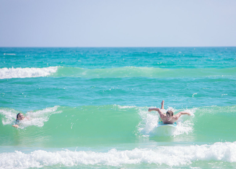 Christian had to stop and try skim boarding. Does this kid talk to everyone?? Yes, he does.