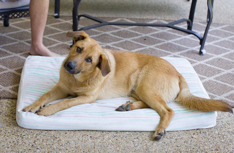 Back in May, Christian was pulling into our neighborhood late one night, when a dog ran in front of his truck. He rushed home and enlisted me to ride back down there with him to check on the dog. I resisted. A lot of lost or dumped dogs turn up out here, and I seem to get especially attached. This case was no different. I, of course, went with him, and this is the sweet pup we found. Christian convinced me we had to bring him home. He didn’t want to get in the truck, so they walked back together and I drove the truck. He slept the first night on our back porch, and we all fell in love. Everyone that met him fell in love, too. We estimated him to be about a year to 18 months, part Golden Retriever, part German Shepard. There was no microchip, and no one looking for him in the area. He was house-broken, laid back, extremely well behaved, surprisingly didn’t shed much, and let us love on him as much as we wanted. At the time, we already had Fergie and a new puppy cooking. Three dogs is just too many for us, so we knew we had to find him a home, not that we really wanted to.