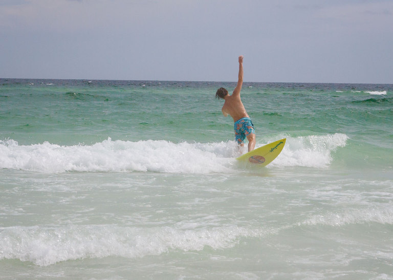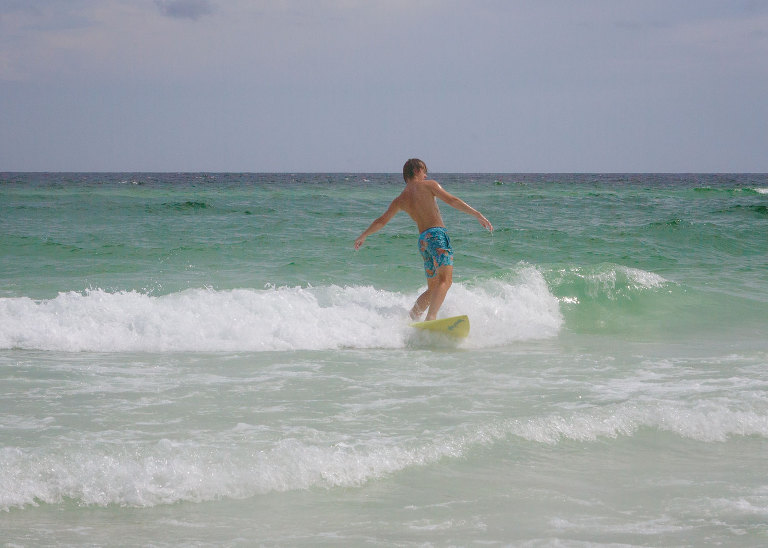 Surfing Allen’s BoardThursday, July 25, 2019Allen sent Christian down with a shorter board to try. The waves weren’t ideal, I mean, but when are they ever? He made a new friend.He ended up being able to get up fine, but the smaller the waves, the bigger the board needs to be. Posted in Christian, Sandestin, Surfing