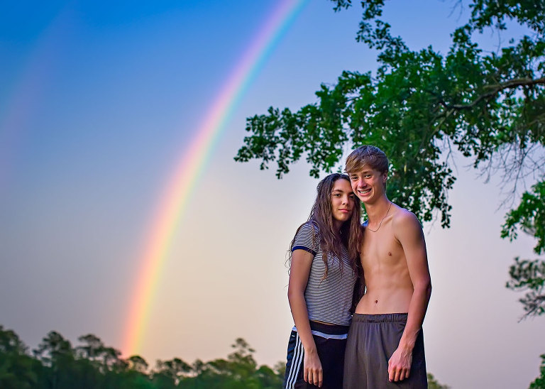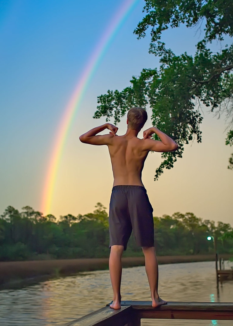 I was sitting at my computer one dark, rainy, weekend day when I noticed the light outside changing. It was still sprinkling, but there was sun somewhere. I couldn’t see it, but I knew it was there, and if that was the case, well…. I yelled, “Rainbow!” I grabbed my camera and went running. Scott followed me but was doubtful. With my camera protected under my shirt I stood in the driveway searching. Sure enough, there was a double rainbow out there for our viewing pleasure. Scott grabbed an umbrella, we yelled for the kids and headed to the pier..jpg)