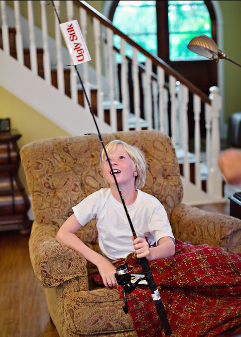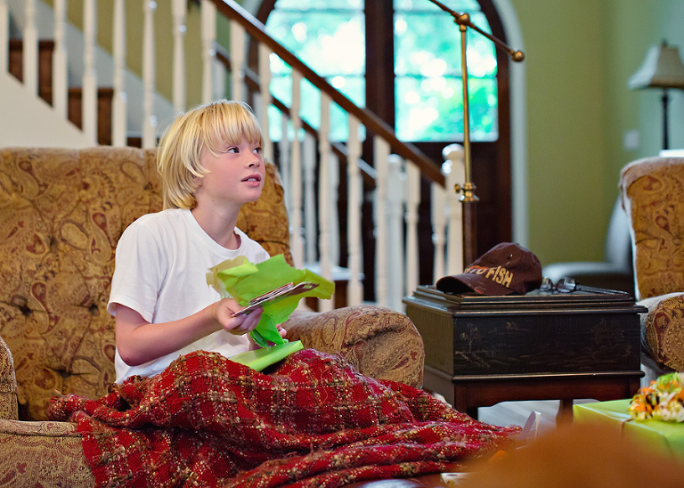 Jackson’s birthday was Monday and he woke up bright and early for his presents. Well, it was raining, and it wasn’t all that early, but there were presents. Christian gave him a cool “Born to Fish” hat.