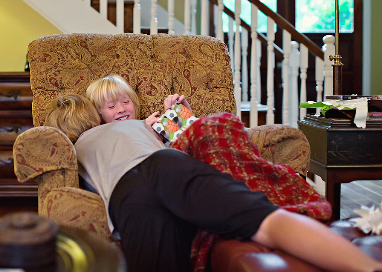 Daddy and Christian brought the rest down. He got tons of fishing stuff, just like he wanted!