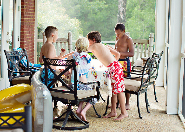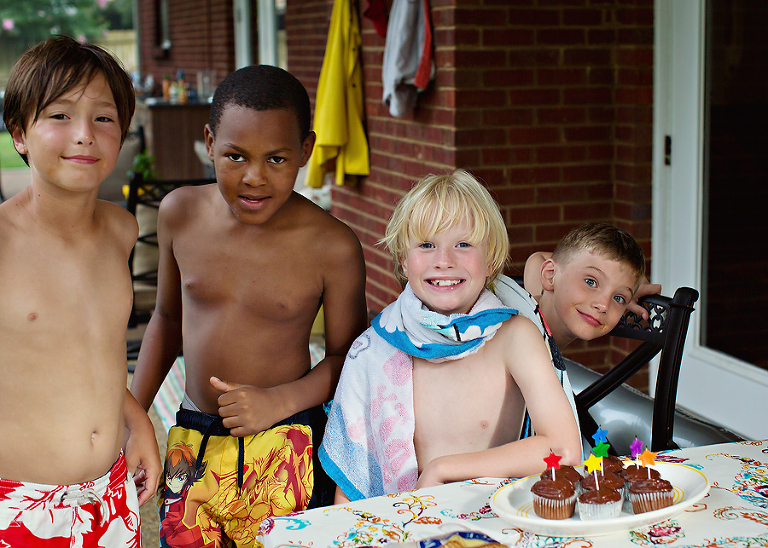Jackson decided that instead of a bigger party, he wanted 3 of his classmates from this year to spend the night. They came over at 2:30, and luckily the rain had stopped and the sun was out.